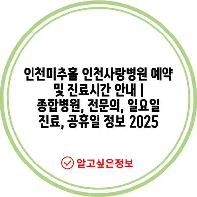 인천미추홀 인천사랑병원 예약 및 진료시간 안내 | 종합병원, 전문의, 일요일 진료, 공휴일 정보 2025