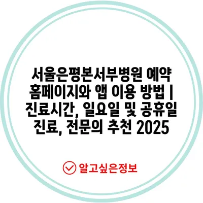 서울은평본서부병원 예약 홈페이지와 앱 이용 방법 | 진료시간, 일요일 및 공휴일 진료, 전문의 추천 2025