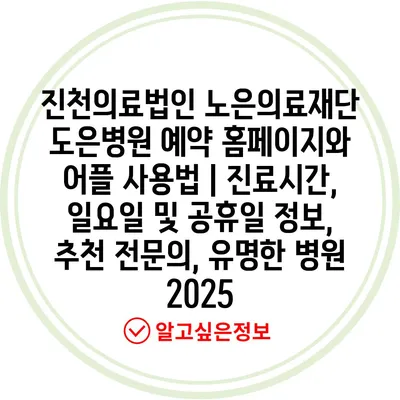 진천의료법인 노은의료재단 도은병원 예약 홈페이지와 어플 사용법 | 진료시간, 일요일 및 공휴일 정보, 추천 전문의, 유명한 병원 2025