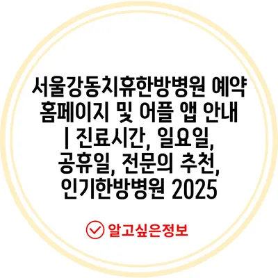 서울강동치휴한방병원 예약 홈페이지 및 어플 앱 안내 | 진료시간, 일요일, 공휴일, 전문의 추천, 인기한방병원 2025