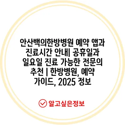 안산백의한방병원 예약 앱과 진료시간 안내| 공휴일과 일요일 진료 가능한 전문의 추천 | 한방병원, 예약 가이드, 2025 정보
