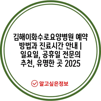 김해이화수로요양병원 예약 방법과 진료시간 안내 | 일요일, 공휴일 전문의 추천, 유명한 곳 2025