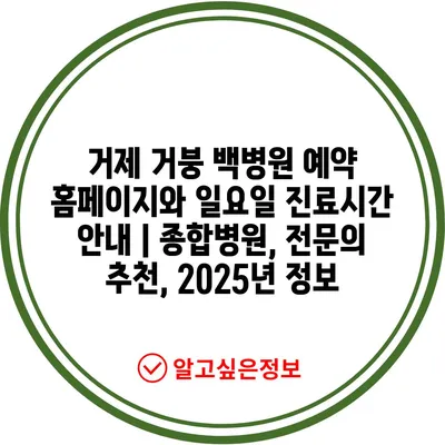 거제 거붕 백병원 예약 홈페이지와 일요일 진료시간 안내 | 종합병원, 전문의 추천, 2025년 정보