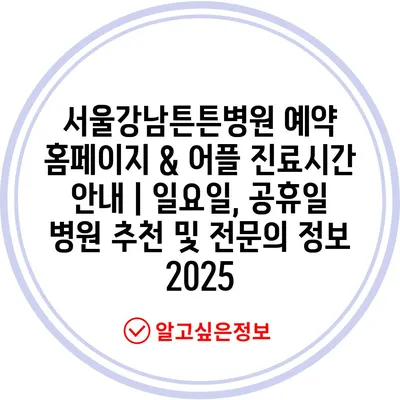 부천예손병원 예약 홈페이지와 어플 앱 활용법 | 진료시간, 일요일 및 공휴일 전문의 추천, 2025년 의료 정보