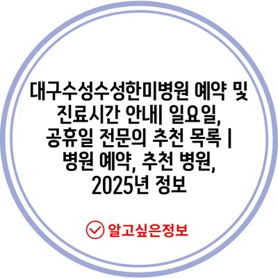 대구수성수성한미병원 예약 및 진료시간 안내| 일요일, 공휴일 전문의 추천 목록 | 병원 예약, 추천 병원, 2025년 정보