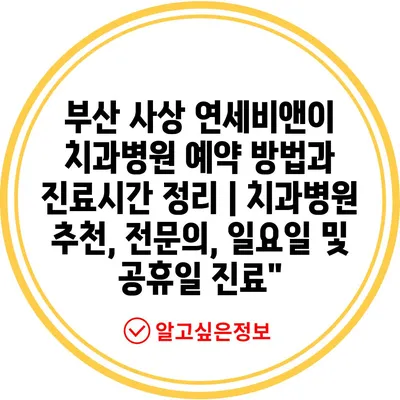 부산 사상 연세비앤이 치과병원 예약 방법과 진료시간 정리 | 치과병원 추천, 전문의, 일요일 및 공휴일 진료”