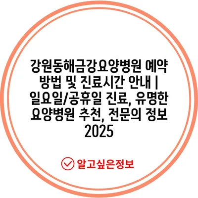 강원동해금강요양병원 예약 방법 및 진료시간 안내 | 일요일/공휴일 진료, 유명한 요양병원 추천, 전문의 정보 2025