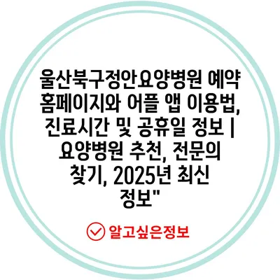 울산북구정안요양병원 예약 홈페이지와 어플 앱 이용법, 진료시간 및 공휴일 정보 | 요양병원 추천, 전문의 찾기, 2025년 최신 정보”
