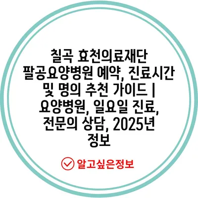 칠곡 효천의료재단 팔공요양병원 예약, 진료시간 및 명의 추천 가이드 | 요양병원, 일요일 진료, 전문의 상담, 2025년 정보