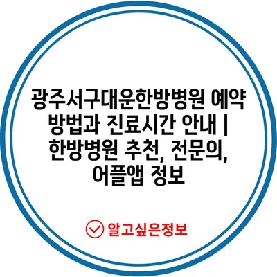 광주서구대운한방병원 예약 방법과 진료시간 안내 | 한방병원 추천, 전문의, 어플앱 정보