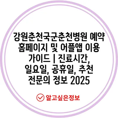 강원춘천국군춘천병원 예약 홈페이지 및 어플앱 이용 가이드 | 진료시간, 일요일, 공휴일, 추천 전문의 정보 2025
