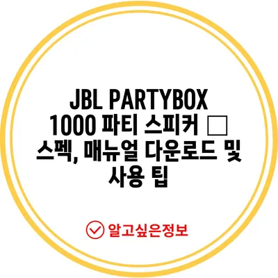 JBL PARTYBOX 1000 파티 스피커 – 스펙, 매뉴얼 다운로드 및 사용 팁