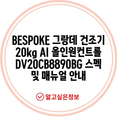 BESPOKE 그랑데 건조기 20kg AI 올인원컨트롤 DV20CB8890BG 스펙 및 매뉴얼 안내