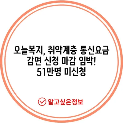 오늘복지, 취약계층 통신요금 감면 신청 마감 임박! 51만명 미신청