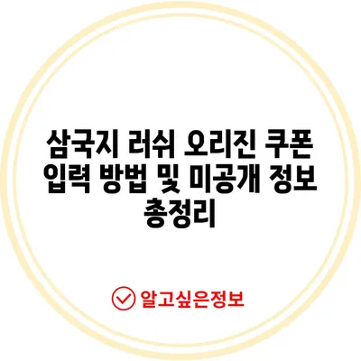 삼국지 러쉬 오리진 쿠폰 입력 방법 및 미공개 정보 총정리