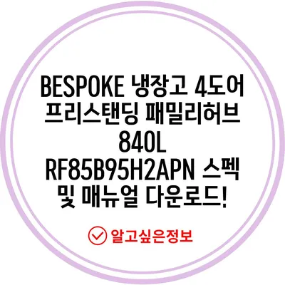 BESPOKE 냉장고 4도어 프리스탠딩 패밀리허브 840L RF85B95H2APN 스펙 및 매뉴얼 다운로드!