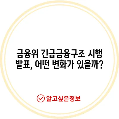금융위 긴급금융구조 시행 발표, 어떤 변화가 있을까?