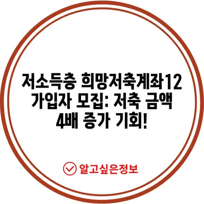 저소득층 희망저축계좌12 가입자 모집: 저축 금액 4배 증가 기회!