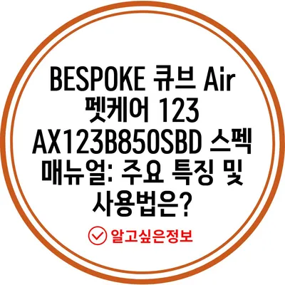 BESPOKE 큐브 Air 펫케어 123 AX123B850SBD 스펙 매뉴얼: 주요 특징 및 사용법은?